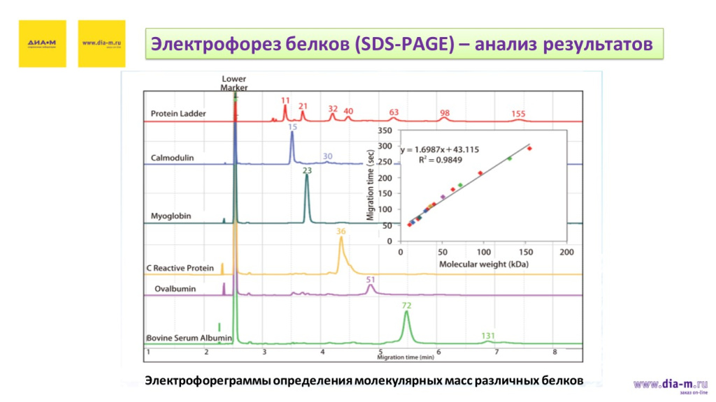 Есть другие примеры электрофореграмм, сделанных на Qsep для определения молекулярных масс различных белков. (Рис. 6)