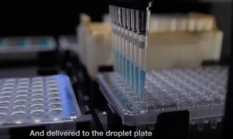 Это валидированные наборы под конкретную задачу, которые соответствуют всем характеристикам, обсужденным сегодня, и оптимизированы для систем Bio-Rad QX200. Устроены они по принципу супермикса, в котором за небольшое количество стадий, показанных на видео, возможна постановка амплификации, а дальше нужно просто перенести плашку, в которой прошла амплификация, в детектор и считать результат.