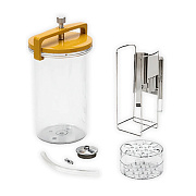 Комплект поставки: анаэростат, крышка без вентиляции с кольцом - прокладкой, прижим крышки с винтом, камера для катализатора, сменный заряд катализатора — 2 уп. х 10 шт., проволочный штатив, штатив для пробирок.