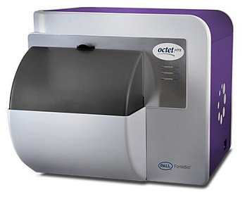 Двухканальная высокочувствительная система Octet K2 для изучения межмолекулярных взаимодействий с возможностью загрузки образцов из 96-луночного планшета. Прибор позволяет проводить анализ больших и малых молекул, но имеет низкую пропускную способность. Два независимых канала измерения позволяют измерять 2 образца параллельно.