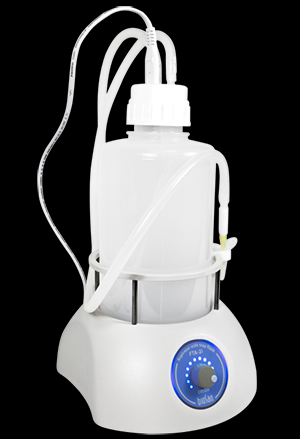 Имеет удобные соединения на крышке, полностью предотвращающие контаминацию, встроенный насос с регулируемым уровнем вакуума от 0 до 600 мбар со световым индикатором, а также датчик уровня жидкости для предотвращения переполнения сосуда-ловушки. На корпусе аспиратора расположен держатель для аспирационной ручки.