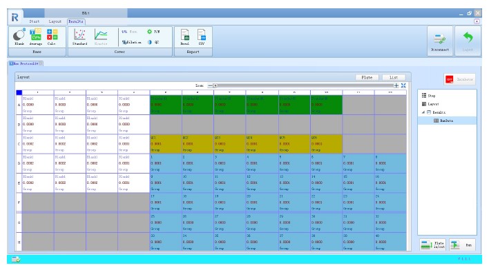ПО поддерживает два режима измерения — Endpoint и Kinetic, позволяет строить стандартные кривые, проводить кинетический анализ, настраивать параметры протоколов и формировать отчеты. Интерфейс программы интуитивно понятен, поддерживает русский и английский языки, работает под управлением Windows 7/10 (64-bit) и совместим с USB-устройствами. Подключение к ридеру осуществляется через USB-кабель, без сложных настроек