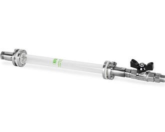 Стеклянные колонки чаще всего находят применение в масштабируемых процедурах флэш-хроматографии с использованием пилотных и полупромышленных установок. Специальное пластиковое покрытие и устойчивость этих колонок к перепадам давления обеспечивают необходимый уровень их безопасности для обслуживающего персонала.