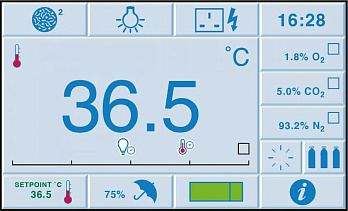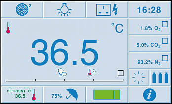 - датчик O₂ и CO₂ может контролировать газовую среду в режиме реального времени;