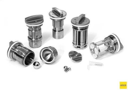 Стаканы, предназначенные для мельницы Cryomill, имеют объем от 5 до 50 мл. Завинчивающиеся крышки предотвращают потерю вещества.