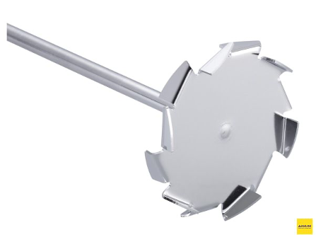 Перемешивающий элемент с насадкой для растворения, радиальный поток и высокая турбулентность ускоряет растворение частиц, смешивание сверху вниз и снизу вверх, на средних и высоких скоростях.
