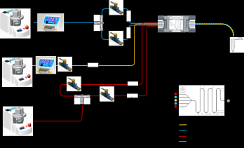 Система включает все необходимые компоненты (модули, чипы, насосы, аксессуары) для сбора генерируемых капель, частиц, и/или потоков продукта в общий резервуар, что уменьшает вероятность схлопывания капель (коалесценции). В этой конфигурации удобно работать с вязкими жидкостями, а также отделять полученные капли продукта от носителя.