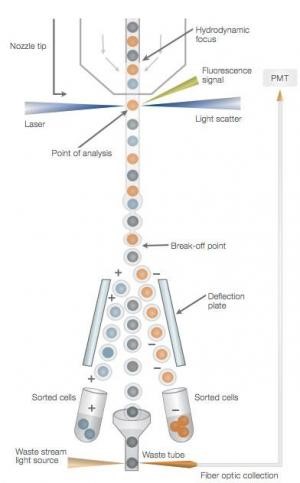• клетки сортируются в растворе водной микросреды для максимального сохранения метаболической активности одиночных клеток;