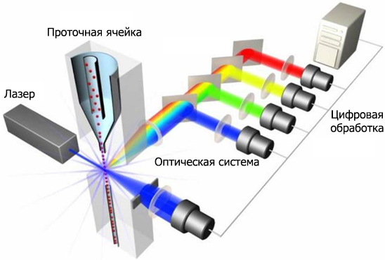 Проточные цитофлуориметры (цитометры) — высокопроизводительные системы анализа частиц (как правило, клеток) в потоке жидкости. Анализ частиц ведется с большой скоростью (до десятков тысяч в секунду), причем каждая частица анализируется отдельно. Метод проточной цитометрии позволяет получать за короткое время качественные и количественные данные по анализируемым частицам с высокой статистической достоверностью. Проточные цитометры используются для широкого круга задач, связанных с анализом клеток, таких как подсчет клеток, иммунофенотипирование (в иммунологии, гематологии, онкологии, при культивировании клеток и пр.), клеточный цикл и пролиферация, клеточное здоровье и апоптоз, автофагия, клеточный сигналинг, токсикология, эффективность трансфекции и т.д. Типичные объекты — клетки человека и животных, клетки растений и микроводоросли, дрожжи, бактерии, микрочастицы и экзосомы.