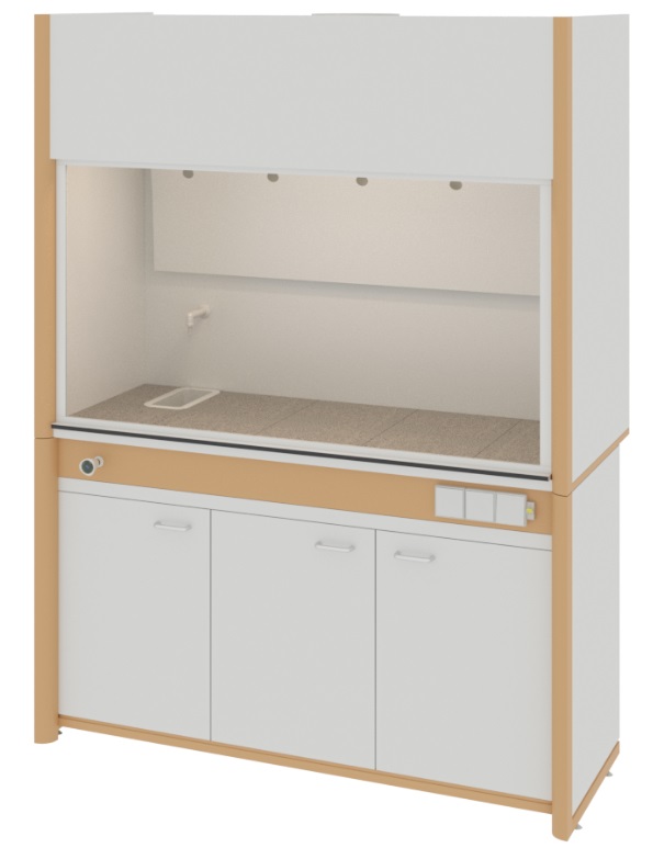 Шкаф вытяжной общего назначения, ширина 154 см, корпус – меламин, столешница – цельная керамика Fridurit 20, 1 подъемный экран, раковина, тумба, ЛОиП