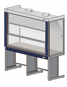 Шкаф вытяжной общего назначения, ширина 184 см, корпус – меламин, столешница – монолитный пластик Trespa, 2 подъемных экрана, раковина, 2 тумбы, ЛОиП