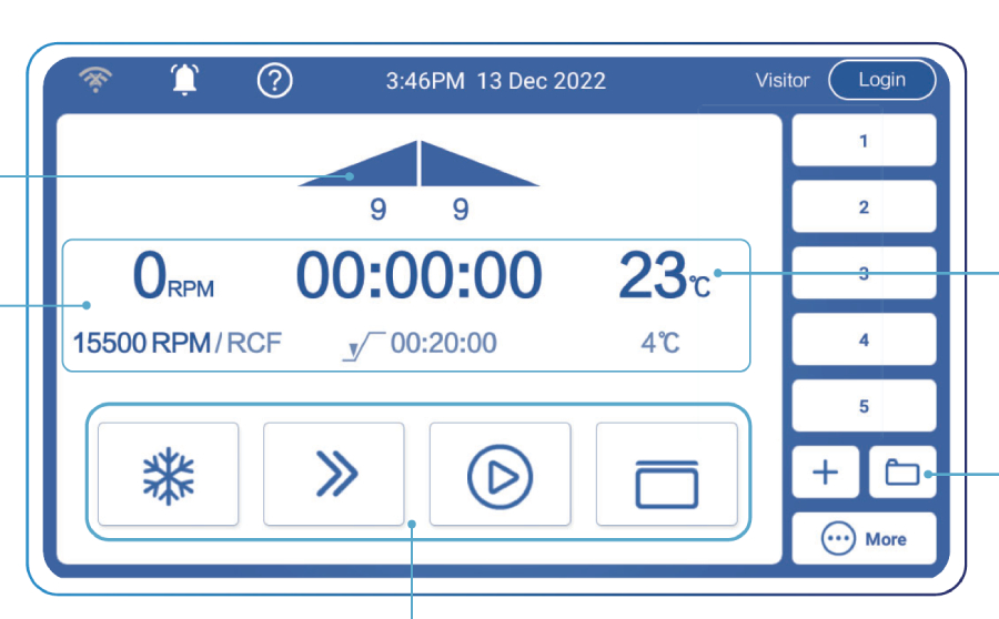 • быстрый запуск центрифуги с коротким периодом предварительного охлаждения;