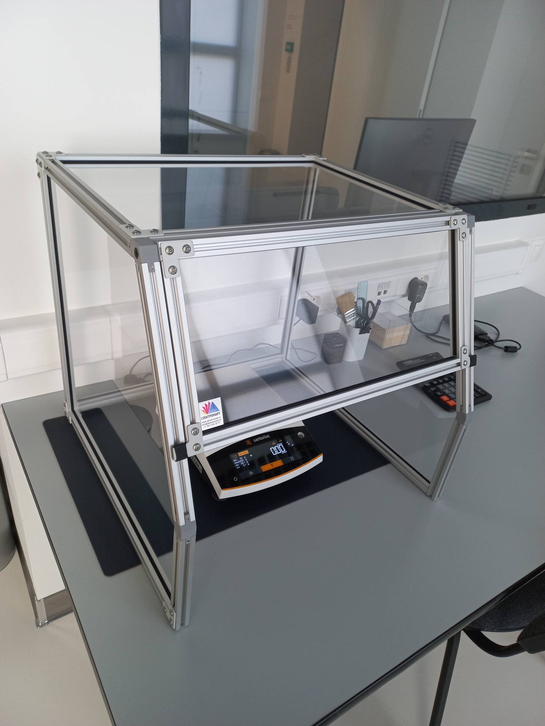 Используется при эксплуатации аналитических микровесов, имеющих очень маленькую дискретность, когда погрешность в измерении может привнести даже движение воздушных потоков, вызванное, например, сквозняками. Для предотвращения этого используются ветрозащитные кожухи, полностью накрывающие весовую платформу с измеряемым объектом.