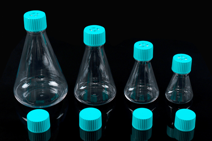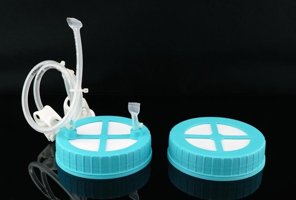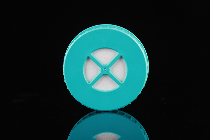 • использование HDPE-крышки с вентиляционными отверстиями, оснащенными гидрофобными фильтрами (0,2 мкм), обеспечивает необходимый газообмен, предотвращая загрязнение содержимого колбы. Эти фильтры защищают образцы от вредных частиц и обеспечивают стабильность условий хранения;