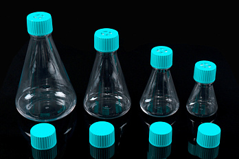 Изготовлены из прозрачного ударопрочного поликарбоната. Крышка из HDPE. Пригодны для суспензионных культур. Поверхность необработанная. Автоклавируются.