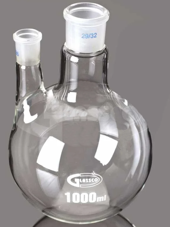 Каждое горло может быть оснащено пробками или другими соединениями для герметизации, а также для подключения систем, позволяющих контролировать условия эксперимента, такие как температура или давление. Двугорлые колбы Glassco изготовлены из высококачественного боросиликатного стекла и являются незаменимыми помощниками в химической лаборатории. Колбы являются многофункциональной платформой для проведения сложных химических реакций, в химических и физических экспериментах для смешивания реактивов, проведения реакций или дистилляции.