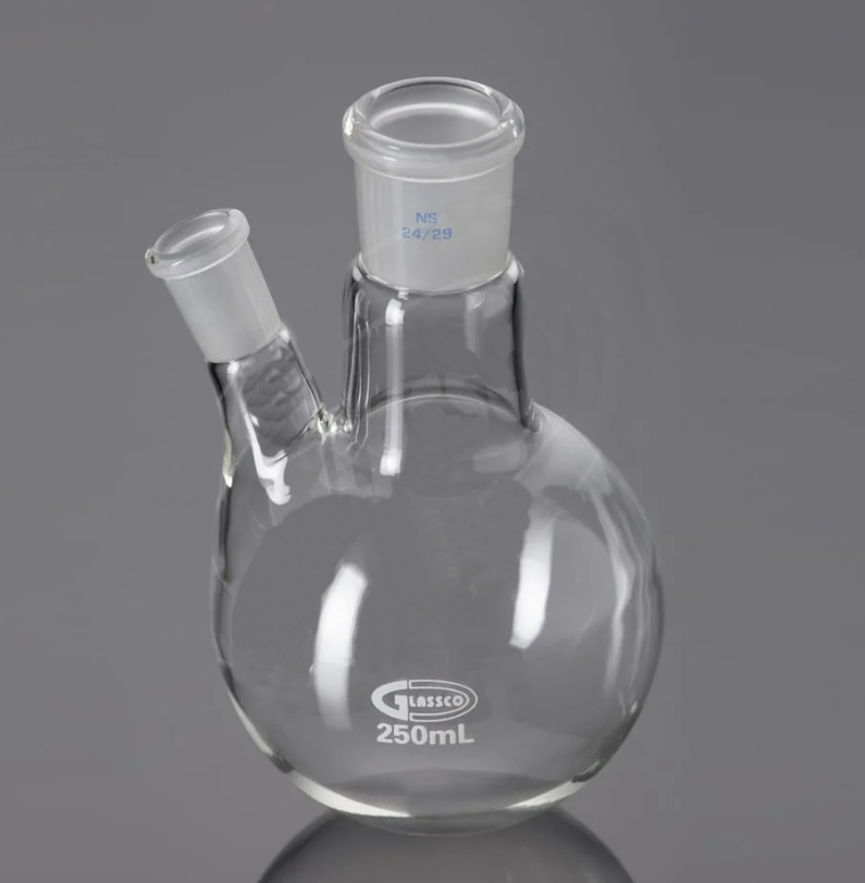 Двугорлые колбы Glassco изготовлены из высококачественного боросиликатного стекла и являются незаменимыми помощниками в химической лаборатории. Колбы являются многофункциональной платформой для проведения сложных химических реакций, в химических и физических экспериментах для смешивания реактивов, проведения реакций или дистилляции.