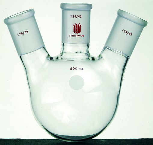 Колба трехгорлая, круглодонная, 25 мл, нестерильная, со скошенными боковыми горловинами