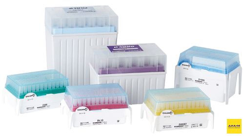 Стерильные наконечники с фильтром, в штативах или в кассетах — по запросу.