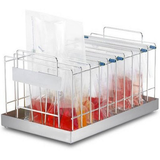Установка из нержавеющей стали для удерживания пакетов в вертикальном положении, хранения; можно мыть и автоклавировать.