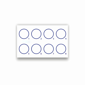 Иммунологическая карточка-планшет с тридцатью белыми лунками с одной стороны и двенадцатью белыми лунками с другой стороны и полем для маркировки. Одноразового применения, жидкость не растекается, хорошо утилизируется.