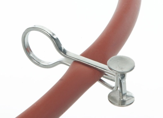 Зажим изготовлен из титана, самозатягивающийся, для трубок и шлангов. Обеспечивает непроницаемость (герметичность) для газов и жидкостей, путем пережатия канала трубок.