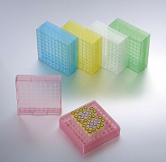 Штатив для хранения криопробирок 1-2 мл, 100 мест, картон с пластиковым покрытием, с крышкой, набор разных цветов, Biologix, Китай