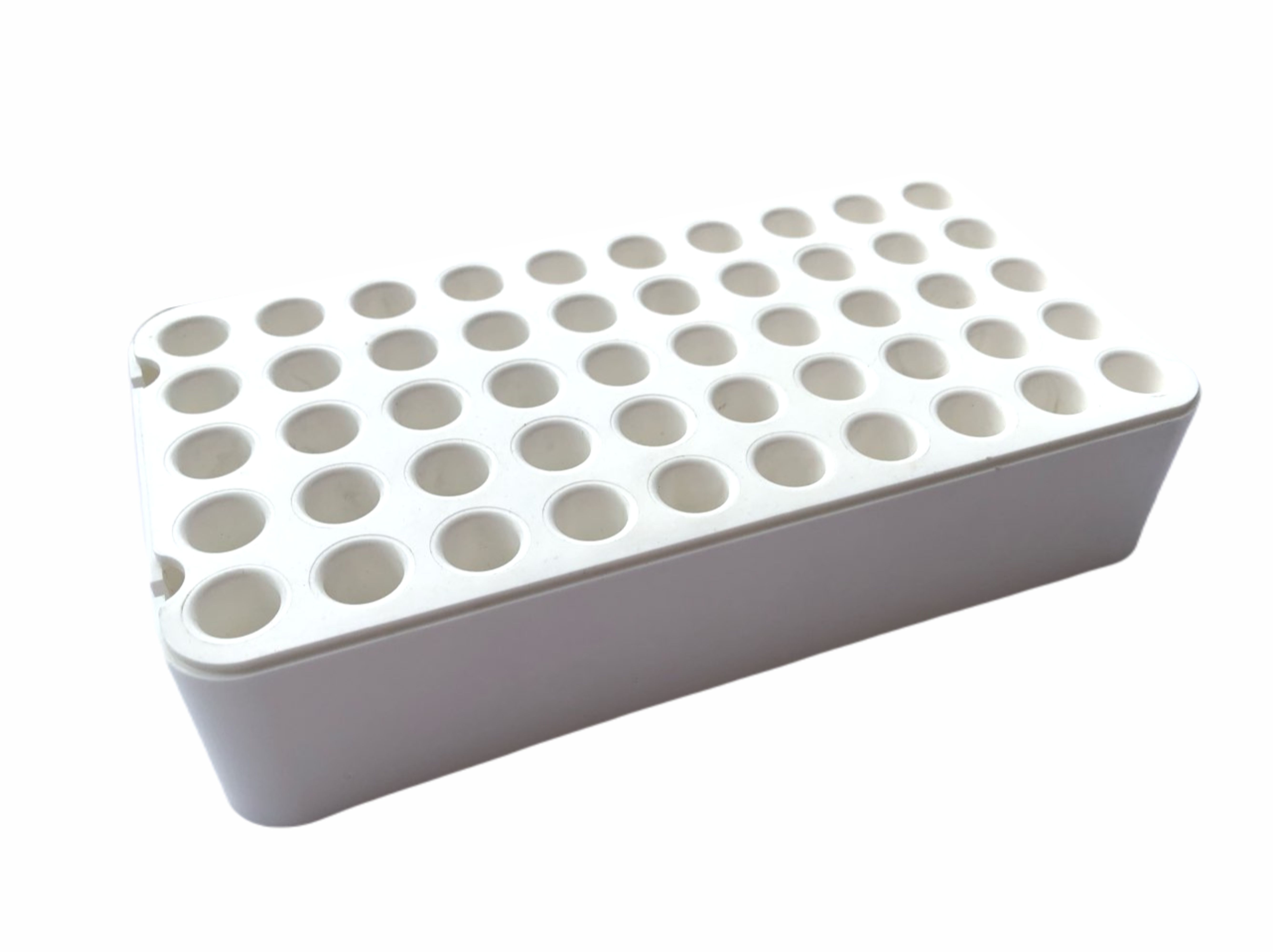 Цельнолитой штатив изготовлен из пластика с лунками, в которые помещаются пробирки/контейнеры, отличается высокой механической прочностью (ударопрочный пластик) и устойчивостью к воздействию химических реагентов. Благодаря своей конструкции штативы легко и прочно штабелируются, обеспечивая экономию пространства при хранении. Особенно подходит для компактного хранения резервных копий образцов. Блочный штатив удобно дезинфицировать, благодаря сквозным отверстиям в каждой лунке. Подлежит автоклавированию.