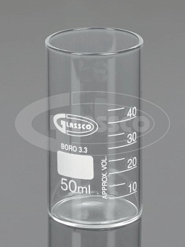 Лабораторный стакан изготовлен из боросиликатного стекла для работы при повышенных температурах (до 500 °С). Также имеют повышенную механическую стойкость.