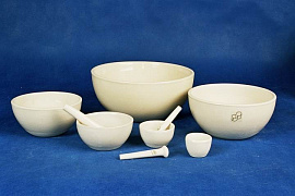 Ступка и пест фарфоровые применяются в лабораториях для тонкого измельчения небольших количеств твердых веществ и тщательного перемешивания нескольких веществ.