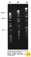 Электрофорез — один из важнейших методов в молекулярной биологии, применяемый для аналитического и препаративного разделения фрагментов ДНК или РНК в зависимости от их длины. Метод основан на различной подвижности молекул в агарозном или полиакриламидном геле под действием электрического поля. Как правило, для электрофореза нуклеиновых кислот используется агарозный гель. Диаэм предлагает широкий выбор агароз для различных экспериментальных задач, а также маркеры длин ДНК, буферные растворы и другие реагенты для электрофореза, красители для визуализации нуклеиновых кислот в геле и оборудование для горизонтального, препаративного и пульс-электрофореза нуклеиновых кислот.