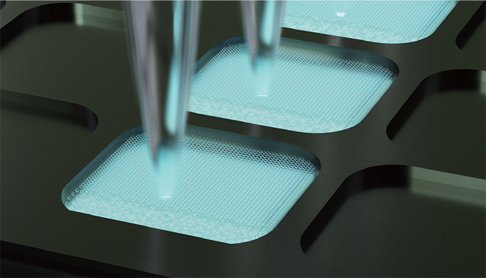Система цифровой ПЦР D600 Digital PCR Analysis System — это прибор-моноблок, выполняющий в автоматическом режиме все стадии цифровой ПЦР — генерацию капель (микрореакторов) из реакционной смеси и нанесение их на реакционный планшет, термоциклирование, детекцию флуоресценции и анализ данных. Принцип работы D600 основан на оригинальной технологии подготовки реакционной смеси OsciDrop (генерация капель путем вибрации и распределение их по поверхности специального реакционного планшета). Конфигурация реакционного планшета системы такова, что пользователь может сам задавать какое количество образцов (и соответствующее ему количество микрореакций на образец) он хочет исследовать. Возможны следующие варианты: до 96 образцов — 5000 микрореакций, до 48 образцов — 10 000 микрореакций и до 24 образцов — 20 000 микрореакций. Система D600 с 2 каналами флуоресценции (FAM, HEX) позволяет проводить все типы анализов без дополнительных затрат. Рабочий процесс системы D600 содержит только один этап ручной работы, а именно приготовление реакционной смеси. Все дальнейшие операции (от генерации микрокапель до анализа данных) проходят на борту прибора в автоматическом режиме. Рабочий цикл с полной загрузкой занимает по времени 2,5-3 часа. Области применения системы D600 Digital PCR Analysis System