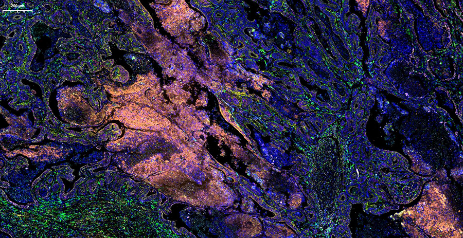 Сможете оценить высочайшее разрешение, скорость обработки (полное стекло за 3-5 минут) и интеллектуальное аналитическое ПО, которое автоматически распознаёт структуры и формирует количественные отчёты с готовыми данными. Можно принести для апробации свои образцы, демонстрируемая конфигурация флуоресцентных каналов (Ex/Em, нм):