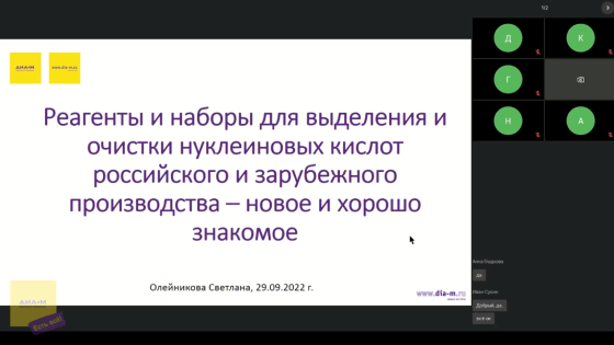 Полная запись вебинара 29.09.22. "Получение высококачественных ДНК и РНК: реагенты, наборы и оборудование – и новое, и старое"