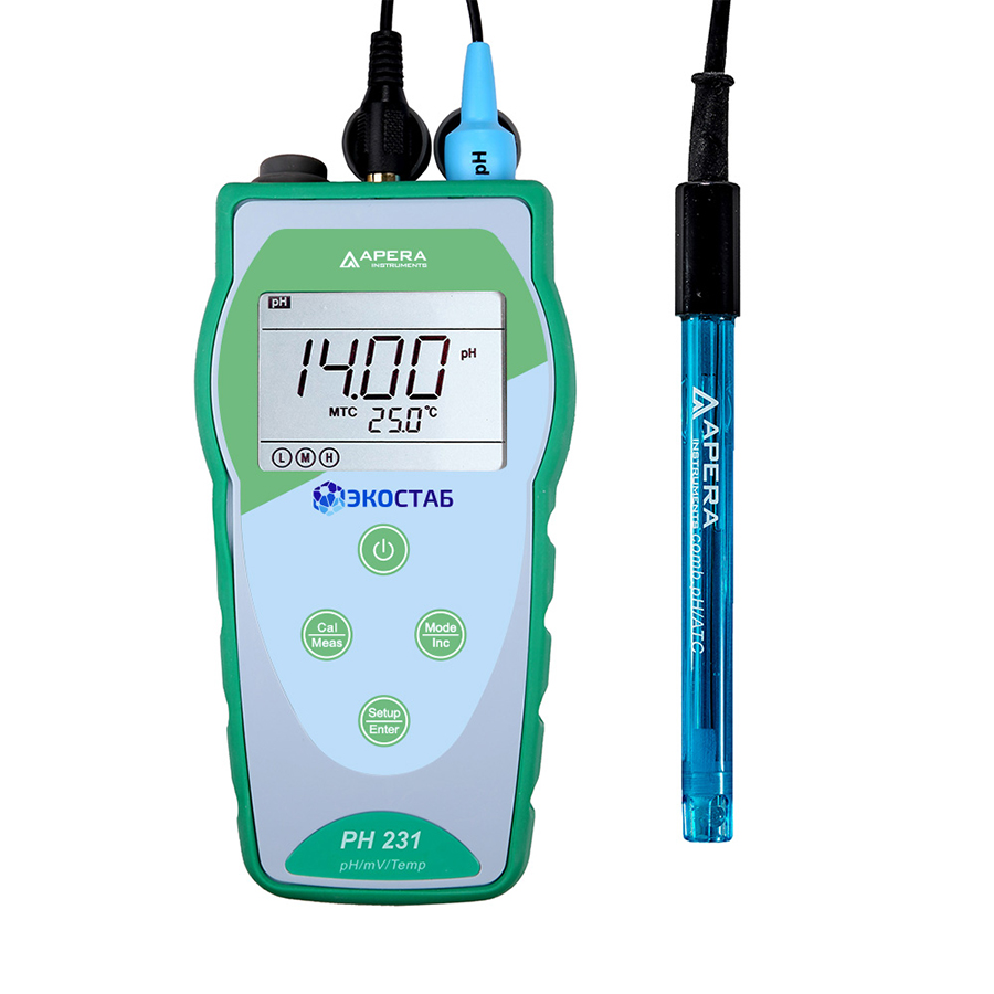 pH-метр — это прибор, используемый для измерения степени кислотности или щелочности водных растворов. Принцип работы основа на электрохимическом процессе, который позволяет анализировать pH раствора по его электрическому потенциалу. pH-метр содержит электроды, которые погружаются в жидкий образец, и устройства для определения и отображения полученных данных. По результатам анализа определяется уровень pH, который может варьировать от 0 (кислотный) до 14 (щелочной). pH-метры широко используются в лабораторной практике, а также в промышленности, сельском хозяйстве и других областях для контроля и регулирования pH в различных процессах. pH-метр портативный PH231 простое, удобное устройство для измерения рН во всем диапазоне от 0 до 14, точность измерений составляет ± 0,01. Прибор оснащен LCD-дисплеем (без подсветки), поставляется вместе с электродом 201T-F. рН-метры серии 230 это портативные приборы, пылевлагозащита класса IP57 и ударозащищенная конструкция которых позволяют использовать прибор в полевых условиях.