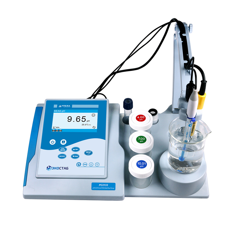 pH-метр — это прибор, используемый для измерения степени кислотности или щелочности водных растворов. Принцип работы основа на электрохимическом процессе, который позволяет анализировать pH раствора по его электрическому потенциалу. pH-метр содержит электроды, которые погружаются в жидкий образец, и устройства для определения и отображения полученных данных. По результатам анализа определяется уровень pH, который может варьировать от 0 (кислотный) до 14 (щелочной). pH-метры широко используются в лабораторной практике, а также в промышленности, сельском хозяйстве и других областях для контроля и регулирования pH в различных процессах. pH-метр/кондуктометр/солемер PC2133 удобное устройство для измерения рН во всем диапазоне от -2 до 20, точность измерений составляет ± 0,002. Прибор оснащен TFT-дисплеем цветным, поставляется вместе с электродом LabSen211 с корпусом из стекла, температурным датчиком МР500 и датчиком проводимости 2301T-F. рН-метры серии 2120 это настольные приборы, оснащены удобным меню и USB- интерфейсом, измерительным стендом с держателем электродов и магнитной мешалкой, сигналом тревоги при измерении, напоминании о калибровке.