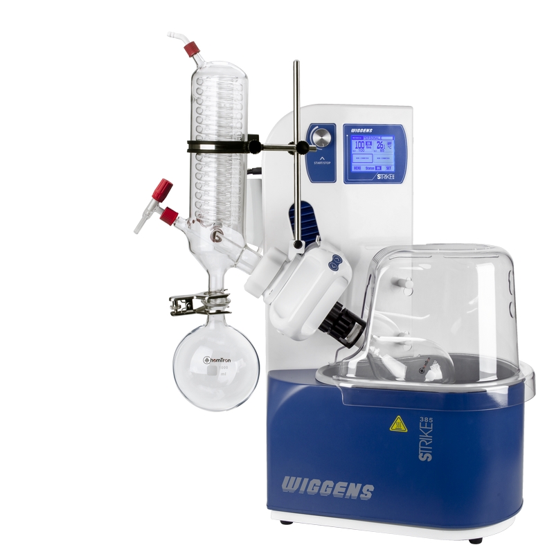 Роторный испаритель Strike 385 (аналог RV 10 digital V) сочетает в себе отличные рабочие характеристики и высокий уровень производительности, а эргономичный дизайн предлагает отличные решения для разделения, концентрирования и очистки. Испарительная колба объёмом 1 л соединяется с испарительной трубкой с помощью соединительного кольца для легкой фиксации и снятия колбы, а конструкция выталкивателя колбы позволяет легко и удобно удалять колбы, просто поворачивая эжектор. Все модели стандартно поставляются с мобильной защитной крышкой безопасности. Она может быть снята и закреплена рядом с прибором. Характеристики роторного испарителя Strike 385