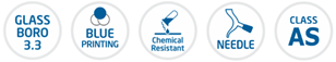 Бюретки Glassco для титрования и высокоточного дозирования жидкостей изготовлены из термически и химически стойкого стекла марки Boro 3,3, Type 1 Class A, в соответствии с требованиями ASTM E-438, и согласно стандартам DIN/ISO-385 и USP.