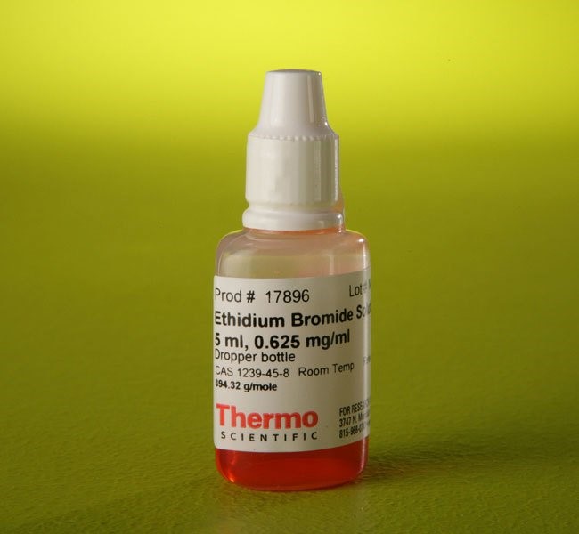 Бромистый этидий является чувствительным флуоресцентным красителем, используемым для обнаружения нуклеиновых кислот в агарозных гелях. Флуоресценция красителя увеличивается в 21 раз при связывании с двухцепочечной РНК и в 25 раз при связывании с двухцепочечной ДНК. Раствор бромистого этидия с концентрацией 0,7 мг/мл в удобном формате флакона-капельницы.