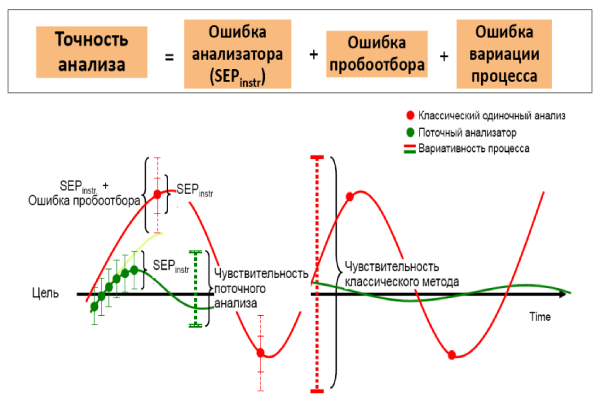 Рассмотрим, почему поточный анализатор приносит намного большую прибыль, чем любой самый точный стационарный лабораторный прибор. Все дело в том, что чувствительность анализа во много раз ценнее точности. Переход от точности к чувствительности — это перенаправление денежного потока из «производственной трубы» в «инкрементальную прибыль» компании.