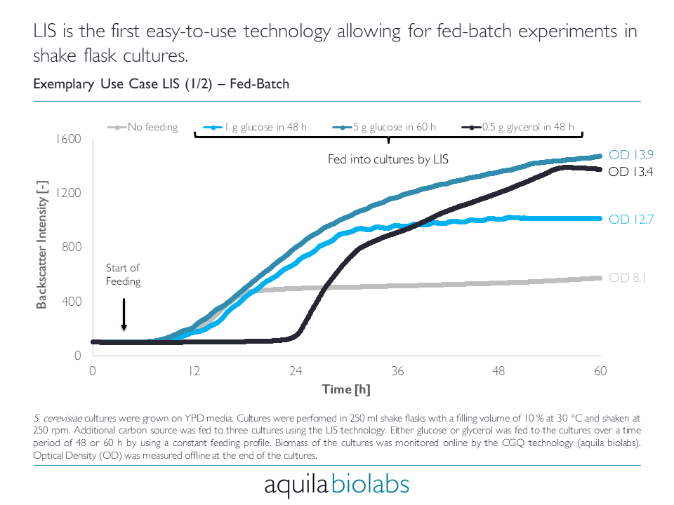Новые девайсы Aquila Biolabs (Infors) дают уникальную возможность осуществлять контролируемое культивирование микроорганизмов в качалочных колбах в шейкере-инкубаторе неинвазивным способом, без прерывания процесса, отбора проб, внесения добавок вручную. Представляем системы LIS и CGQ, которые позволяют автоматически подавать индукторы и растворы питательных веществ, корректировать рН и осуществлять онлайн мониторинг биомассы в качалочных колбах.