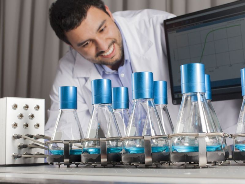 • скрининг штаммов / мутантов, сред и условий биопроцесса (скорость встряхивания, объем заполнения, температура и т.д.);