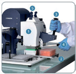 Не нуждающаяся в программировании, бесшумная механическая система Platemaster для одновременного отбора образцов из любой емкости и дозирования их в 96- или 384-луночные планшеты быстрее, чем при применении любых методов ручного дозирования и даже быстрее многих роботов: