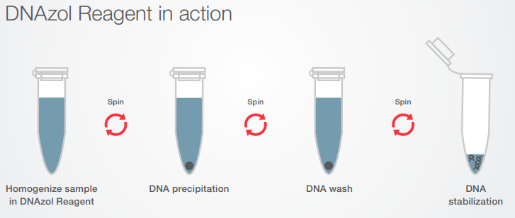 - Реагенты семейства DNAzol, Invitrogen - готовые к использованию реагенты для выделения геномной ДНК из твердых и жидких образцов животного, растительного, бактериального происхождения, грибов, бактерий, вирусов и дрожжей.