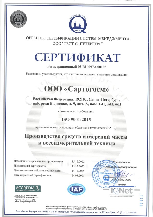 Производственное подразделение компании (ООО «Сартогосм») было основано в 1991 году в городе Санкт-Петербурге. Более 30 лет оно специализируется на выпуске гирь, весов (электронных, аналитических, промышленных). Со временем добавились направления по производству других лабораторных и биотехнологических решений.